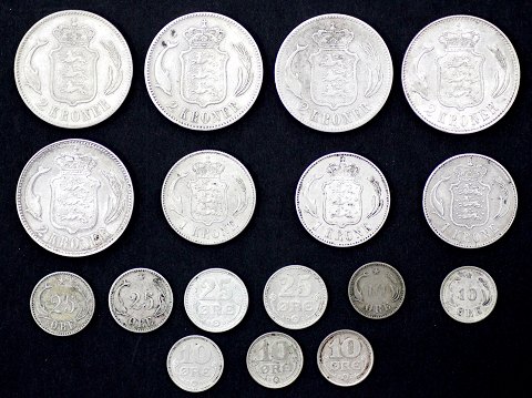 Christian IX / Christian X, 10 øre ~ 2 kr. 1875 ~ 1919 sølv (17)