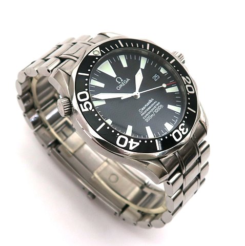 Omega Seamaster Diver 300 M herrearmbåndsur, ref.nr. 2254.50.00 i urkasse og med foldelænke af stål. Sort skive bag safirglas med stregindikation, central sekundviser og datovisning i #3 position. Automatisk værk. Urkasse diameter 40 mm.