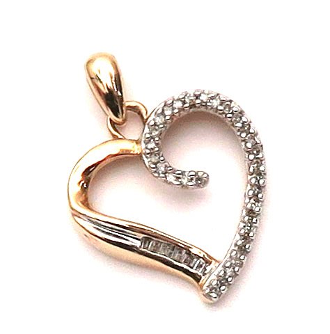 Vedhæng i form af hjerte med 30 små diamanter og 3 baguetteslebne diamanter, tilsammen ca. 0,18 ct., samlet vægt ca. 2,5 gr.
