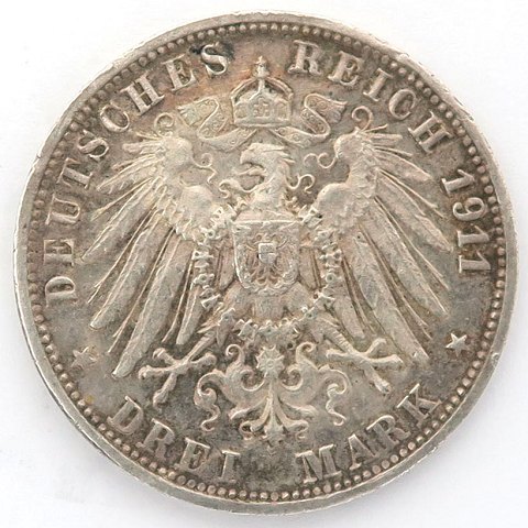 Tyskland, Württemberg, Wilhelm II, 3 mark 1911
