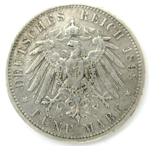 Preussen, Wilhelm II, 5 mark, 1893A, sølv, KM #523