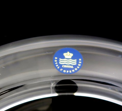 Royal Copenhagen, rund skål af krystalglas, diameter 26 cm., samt tulipanformet fyrfad stage af krystalglas, diameter 12 cm.