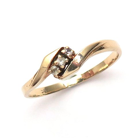 Ring af 14 kt. guld, prydet med tre små, facetslebne sten, Ring Str. 56, samlet vægt ca. 1,5 gr.