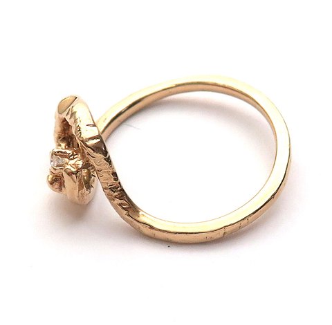 Abstrakt ring af 14 kt. guld, prydet med brillantsleben diamant på 0,03 ct. Ring Str. 52, samlet vægt ca. 3 gr.