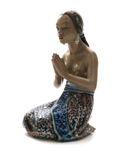 Royal Copenhagen, Dahl Jensen figur #1253 i form af orientalsk kvinde i bøn. H. 17 cm., 2. sortering.