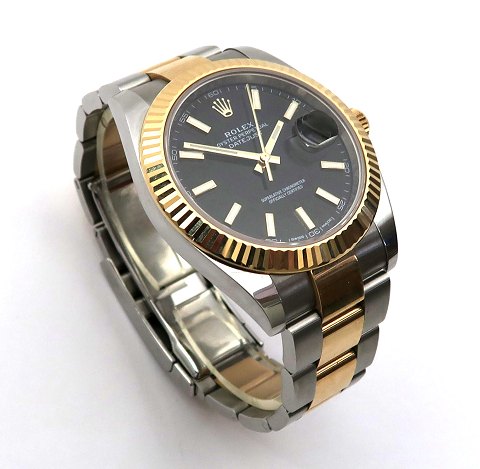 Rolex DateJust herrearmbåndsur, ref. nr. 126333 i urkasse og med foldelænke af guld-stål. Sort skive med stregindikation, separat sekundviser og datovisning i #3 position. Automatisk værk kaliber 3135. Urkasse diameter 41 mm.
