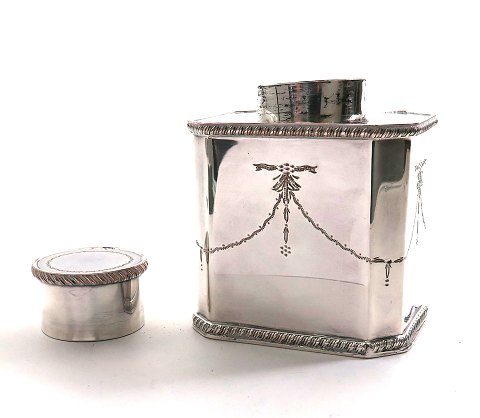 Engelsk thédåse af sølvplet i victoriansk form og dekoration. H. 12 cm.