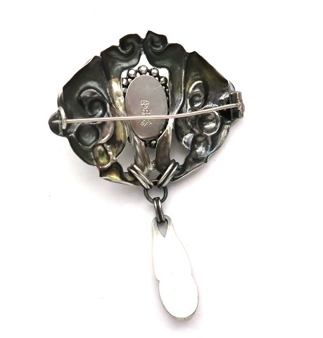 Dansk Bernhard Hertz sølvbroche i jugendstil, prydet med rav