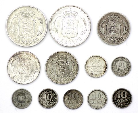 Christian IX / Frederik VIII / Christian X, 10 øre, 25 øre, 1 kr. og 2 kr. 1876 ~ 1919.