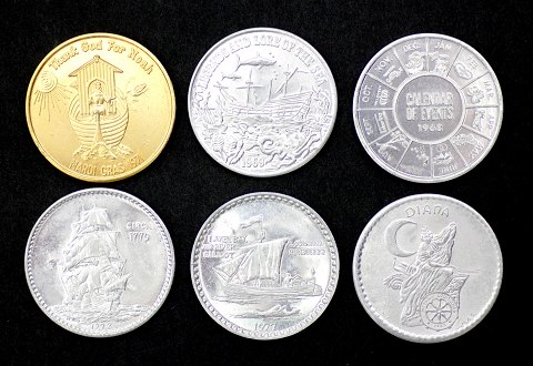 Medaljer af metal, udgivet af deltagergrupperne i Mardi Gras optoget i New Orleans. Medaljer af grupperne Krewe og Thoth, Poseideon, Little Wreck, Olympia, Rosethorne og Majastia Waters.