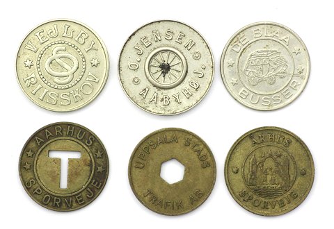 Lot bestående af 2 forskellige Aarhus Sporveje poletter, O. Jensen, Brabrand – Aabyhøj – Aarhus, Vejlby Risskov samt Jens Abildskou og Uppsala Stadstrafik AB.