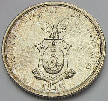 Filipinerne, 50 centavos SØLV 1945 - KM 183 *PÆN*