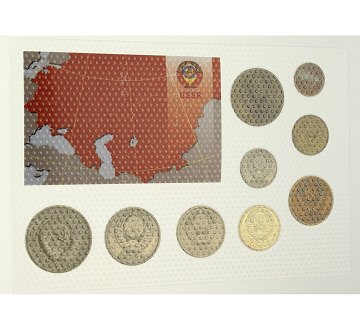 Sættet består af 1 Kopeck 1990, 2 Kopeck 1987, 3 Kopeck 1982, 5 Kopeck 1981, 10 Kopeck 1972, 15 Kopeck 1961, 20 Kopeck 1982, 50 Kopeck 1979 samt 1 Ruble 1964.