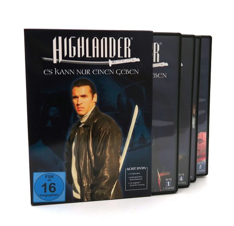 Highlander serien /Engelsk/Tysk (2.0) 22 episoder af serien på 8 DVD'er samt bonusmateriel med interviews og kommentarer m.v. (ikke til børn under 18 år)