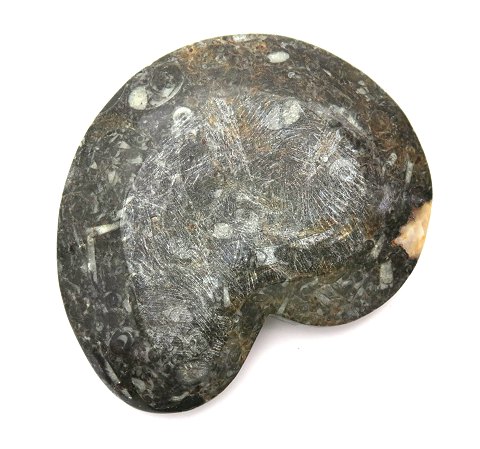 Skål i form af ammonit, indeholdende fossile ammonitter
