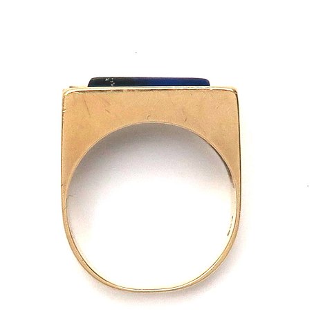 Ring af 14 kt guld, prydet med rund, aflang lapiz lazuli. Ring Str. 55½. vægt ca. 6,5 gr.
