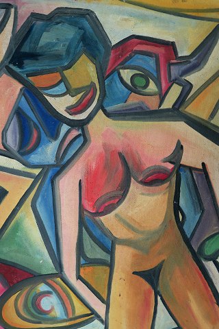 Ole Østrup (1942 - 2002), signeret, abstrakt maleri i form af kvinde.