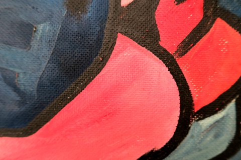 Abstrakt maleri, af kvinder, tempera på masonit. 79,5 X 32 cm.