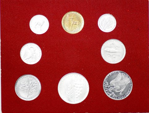 8 stk. Lire mønter udstedt under Pave Paul VI.