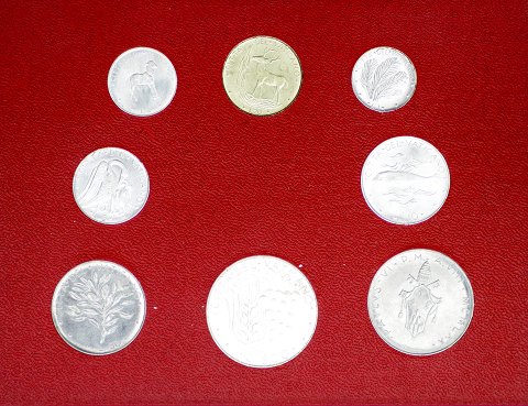 8 stk. Lire mønter udstedt under Pave Paul VI.