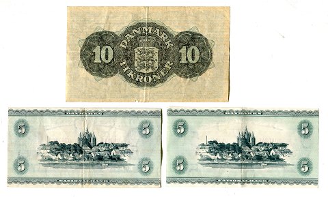 Pengesedler, Danmark. 1 kr., 5 kr. og 10 kr. 1921 ~ 1959 (7)