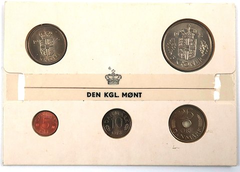 Møntsættet indeholder samtlige mønter i Danmarks møntserie præget i særlig høj kvalitet: 5 kr. og 1 kr samt 25 øre, 10 øre og 5 øre.