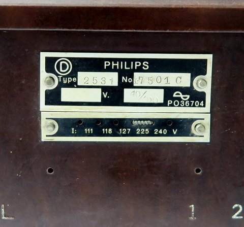 Philips bakelitradio, MW og LW modtager Type 2531 - TRF, Bakelikabinet 37 x 21 x 19 cm., højtaler diameter 45 cm.