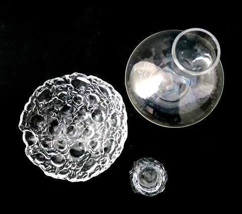 Lot bestående af Spiegelau karaffel med balusterformet korpus, H. 21 cm., moderne skål af krystalglas, diameter 20 cm., samt finsk fyrfadsstage af glas.