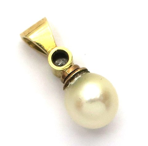 Vedhæng af 14 kt. guld, prydet med brillant på 0,10 ct. og 8½ mm. kulturperle