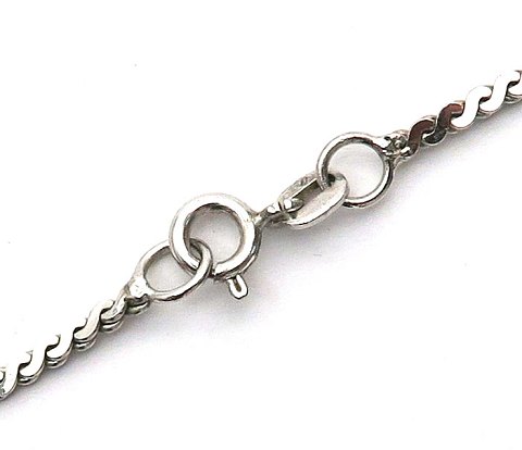 Collier af sølv med front i form af bladværk, prydet med 5 blå, facetslebne safirer samt vedhæng, besat med 6 mm. kulturperle.