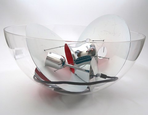 VP Globe pendel, hvor plexiglas overdelen under en flytning er gået i stykker. Derudover mangler der et tungesæt til samling af over og underdelen. (De manglende dele kan købes i fri handel - tjek internettet).