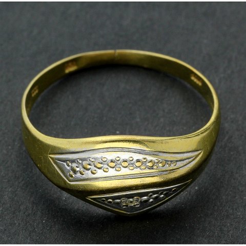 Ring 8 kt. guld med sølv deko på toppen.