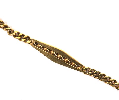 Lommeurskæde af 18 kt. guld, panser mønstret med aflange mellemled og ekstra pyntelås, alt 18 kt. guld. L. 39 cm., samlet vægt ca. 22 gr.