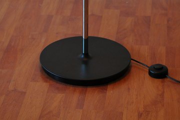 PH 80 gulvlampe med skærme udført af hvid opal akryl, overskærm i sort polykarbonat og stander af højglans forkromet stål. Monteret med plast ledning med afbryder. H. 131,5 cm Diam. 55 cm. Fremstillet hos Louis Poulsen.