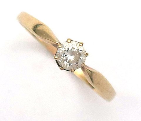 Ring af 14 kt. guld med rund, facetsleben sten. Ring Str. 54, samlet vægt ca. 1,5 gr.