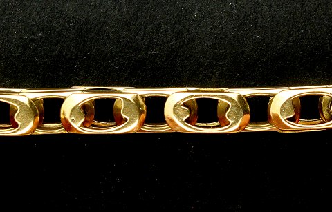 Armlænke af 14 kt. guld. Lænken består af ovale ringe sammensat i et murstensmønster.