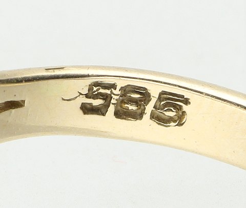 Ring af 14 kt. guld med sort oval carbochon (0,7 X 0,6 cm).