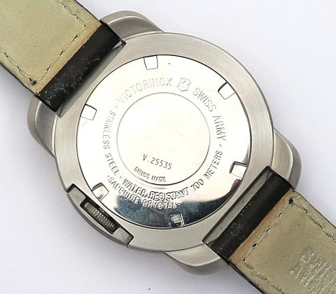 Fabriksnyt Victorinox Mechanicalherrearmbåndsur, ref. nr. V 25035 i urkasse af stål. Oplukkelig krans og sort skive bag mineralglas med stregindikation og kl. 9/3 visning, central sekundviser og datovisning i #6 position med hvid baggrund. Manuelt mekanisk optræksværk. Urkasse diameter 40 mm. Læderrem med metalspænde.