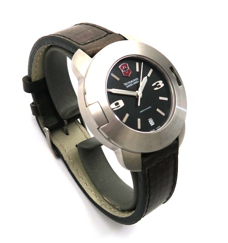 Fabriksnyt Victorinox Mechanicalherrearmbåndsur, ref. nr. V 25035 i urkasse af stål. Oplukkelig krans og sort skive bag mineralglas med stregindikation og kl. 9/3 visning, central sekundviser og datovisning i #6 position med hvid baggrund. Manuelt mekanisk optræksværk. Urkasse diameter 40 mm. Læderrem med metalspænde.