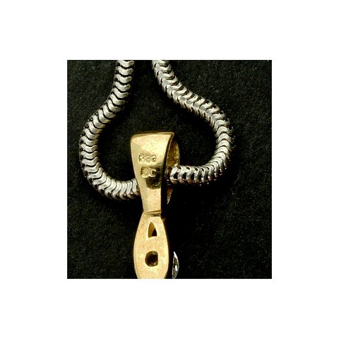 Vedhæng af 8 kt. guld prydet med en blank sten, slangehalskæde af sterling sølv medfølger.