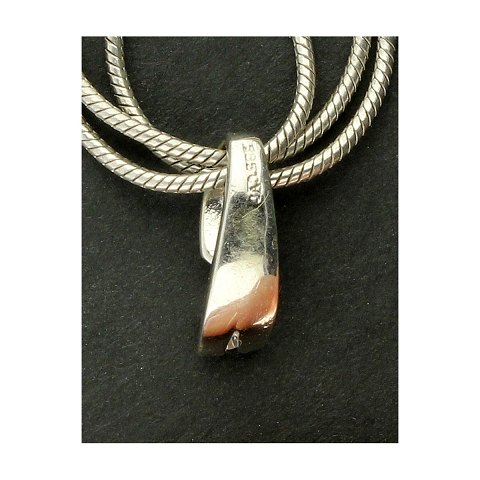 Vedhæng af 14 kt. hvidguld prydet med en 0.03 ct. diamant. Der medfølger en slangehalskæde af 925 sølv bestående af 3 kæder