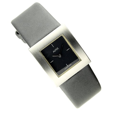 Alfex - Puristisk koksgrå quartz dameur i firkantet urkasse.