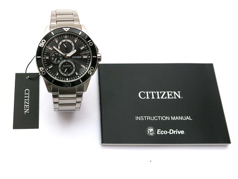 Fabriksnyt Citizen Eco Drive, nyt herrearmbåndsur, ref nr. AP4030-57E i urkasse og med foldelænke af stål. Sort skive bag mineralglas med stregindikation, Central og separat sekundviser samt separat dag og datovisning. Eco Drive quartzværk med lysgenopladelig batteri. Urkasse diameter 43 mm. Citizen manual medfølger.