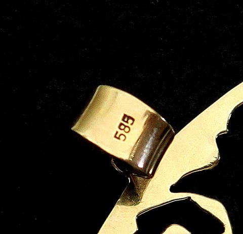 AGF vedhæng af 14 kt. guld med gennembrudt AGF logo for "Aarhus Gymnastiske Forening" Vedhæng L. 50 mm., vægt ca. 15 gr.