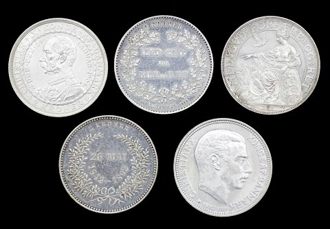 Frederik VIII, Christian IX, Christian X, 2 kr. sølv erindringsmønter (5)