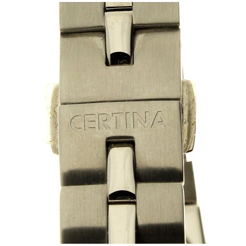 Certina dameur - swiss made. Urkasse samt lænke af matteret rustfri stål, med accenter af blank stål og en fin mat guldfarvet rand om urskiven, safirglas. Sort urskive med stregindex. Uret er vandtæt.