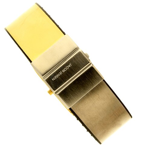 Tofarvet Jacob Jensen quartz unisex ur af rustfri stål. Urkassen er guldtonet med safir glas. Urskiven er tofarvet mat sølv/guldtonet med guldtonede visere, centralt placeret sekundviser og dato i #6 position.