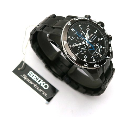 Fabriksnyt Seiko Sportura chronograph, nyt herrearmbåndsur - stål