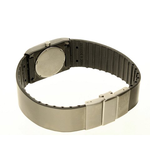 Urremmen er af gummi beklædt med metal, en side er matteret sort og en side er matteret stål.