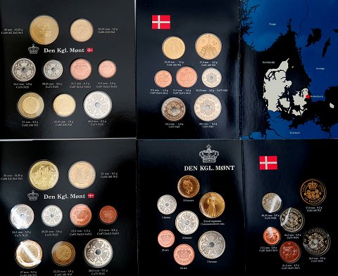 Møntsættene indeholder lidt bedre årstal, med samtlige mønter i Danmarks møntserie i det pågældende år, præget i særlig høj kvalitet.
